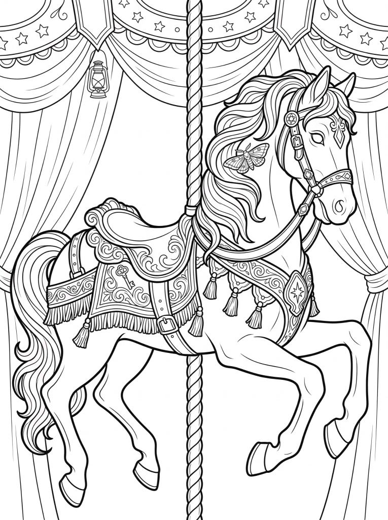 • Intricate carnival scenes designed for relaxing coloring
